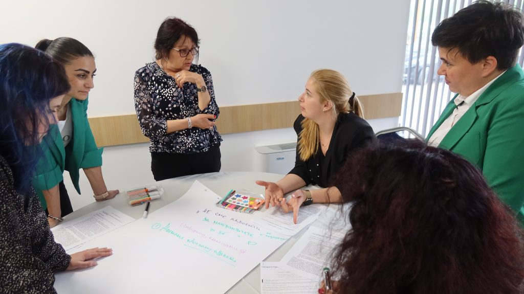 Темата за застъпничеството и ролята на гражданския сектор в работата на институциите, разгледахме в конкретика и с адв. Деница Любенова от ЛГБТИ организация “Действие”. През примери от Коалицията адв. Любенова предложи начини за адресиране на различни казуси, чрез стратегическо застъпничество и  законодателство.  Една от темите, които обсъдихме бе казусът от изминалата година, когато плакат с историята на Лили и Дари, част от кампания ни  “Истории за промяната”, в град Стара Загора бе вандализиран. По време на срещата обсъдихме и приехме стратегия за действие и мерки при подобни случки.